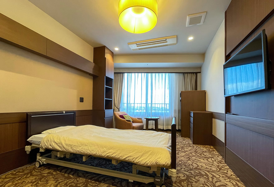 ロイヤル館介護医療院では東館介護医療院で行われている、お一人おひとりの特性に応じた適切な医療と看護・介護を基準にして、更により広い療養環境とロイヤル館のお食事、プライバシーを重視した個室環境をご用意させていただいております。